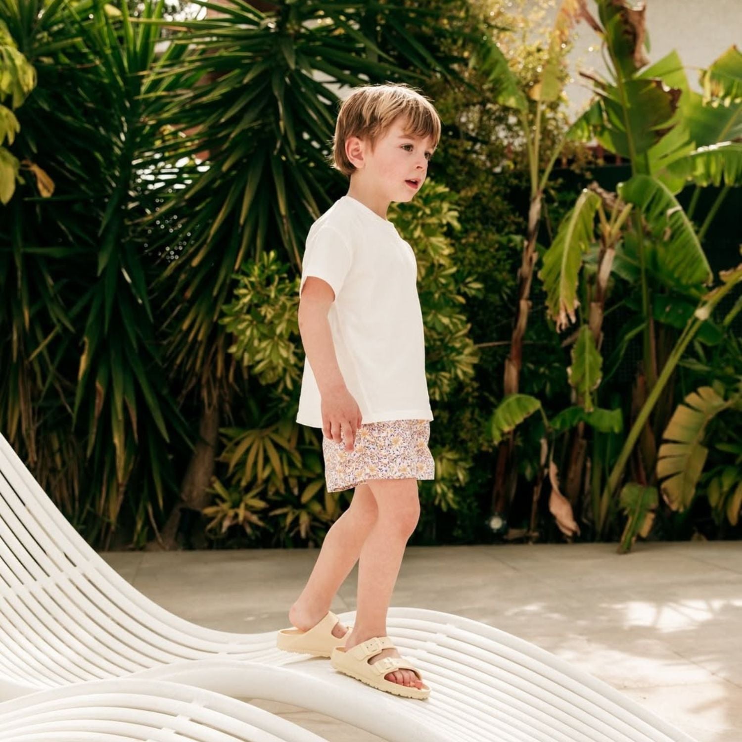 Water-resistant slippers designed for beach and pool days.